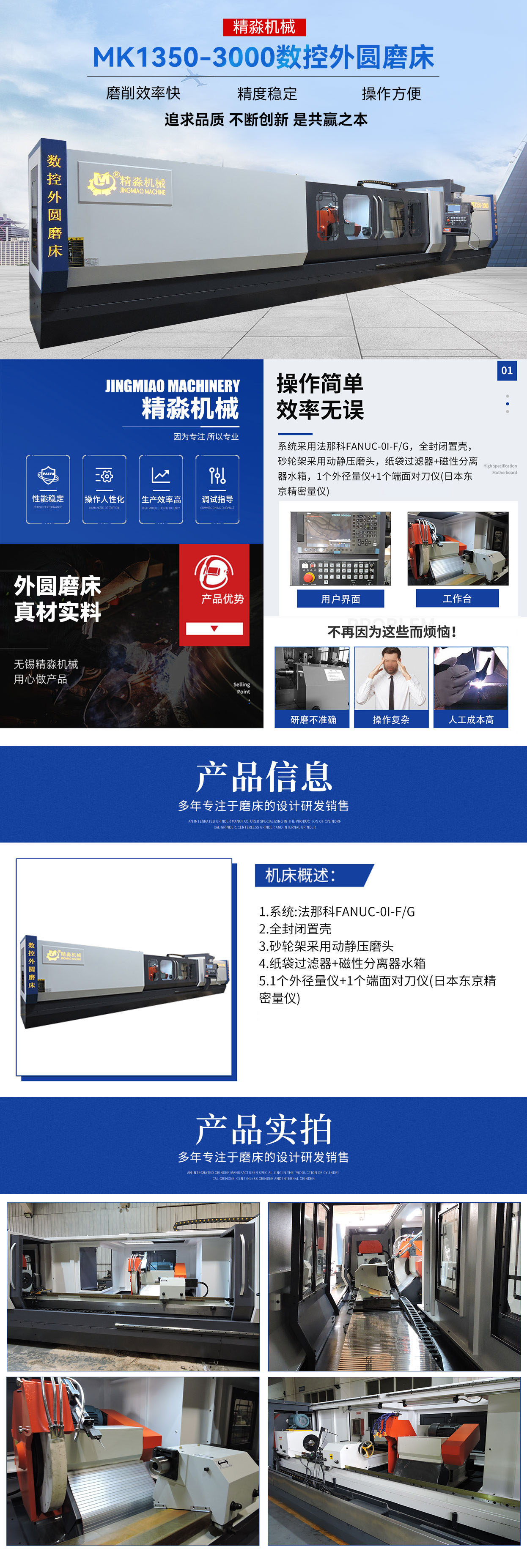 歡迎您訪問無錫市精淼機(jī)械科技有限公司官網(wǎng)!本公司主要產(chǎn)品有:磨床,外圓磨床,萬能外圓磨床,數(shù)控外圓磨床,數(shù)控端面外圓磨床,數(shù)控復(fù)合磨床,專機(jī)定制,高精度外圓磨床 !